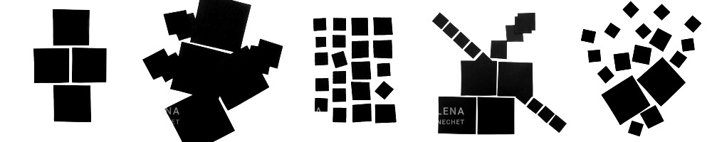 This is an exercise in composition to express concepts with black simple shapes, squares.